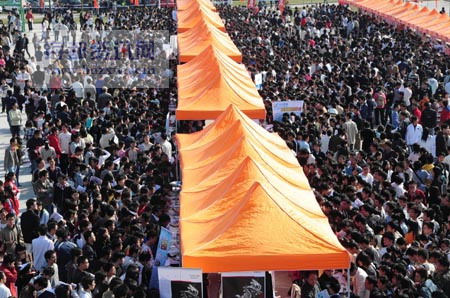 酒店“門童”、“運(yùn)送員”,這些原本與大學(xué)生不沾邊的崗位,昨日(11月20日)出現(xiàn)在福州舉行的大學(xué)生招聘會(huì)上。昨日,由福建省人事廳、中國(guó)海峽人才市場(chǎng)聯(lián)合舉辦的“福建省2009年大中專畢業(yè)生福州地區(qū)大學(xué)新校區(qū)專場(chǎng)招聘會(huì)暨大學(xué)生見習(xí)招聘會(huì)”,在福建師范大學(xué)旗山校區(qū)拉開帷幕,有上萬(wàn)名學(xué)生進(jìn)場(chǎng)應(yīng)聘。