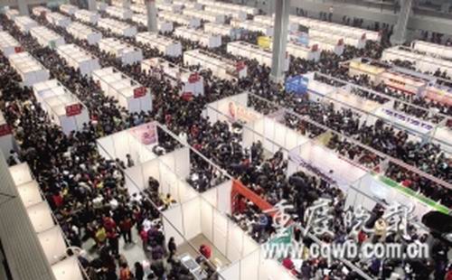 昨上午,春節(jié)后重慶市首場春季人才交流大會,在南坪國際會展中心舉行。500多家企業(yè)提供的1.3萬個崗位吸引了5萬多名求職者前往,創(chuàng)下我市近年來招聘會求職人數(shù)新高。