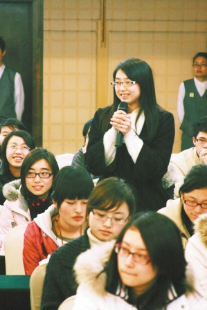 胡:你是班長(zhǎng),而且還擔(dān)任了學(xué)校里的團(tuán)干部,并被評(píng)為校級(jí)優(yōu)秀團(tuán)干部。請(qǐng)問(wèn)你當(dāng)團(tuán)干部主要負(fù)責(zé)什么工作?