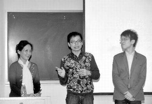 昨晚8時許,四川師范大學大學生心理健康教育服務中心和愛白成都青年同志活動中心邀請吳幼堅、鄭遠濤及其男友來到校區,為大學生聯手上了一堂同性戀話題的課。