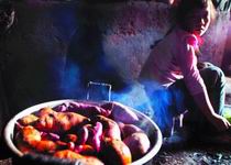 孫家有5畝地,各種一半的紅薯和苞谷,不夠全家5口人和1頭肥豬的口糧,在短暫的雨季,能種一些白菜、青豆和小瓜。旱季來臨,吃的只有早先曬干的白菜,這個時候?qū)O父需要去村外的礦山里打3個月工,每天30元工錢,用來買些大米和供3個孩子入學。