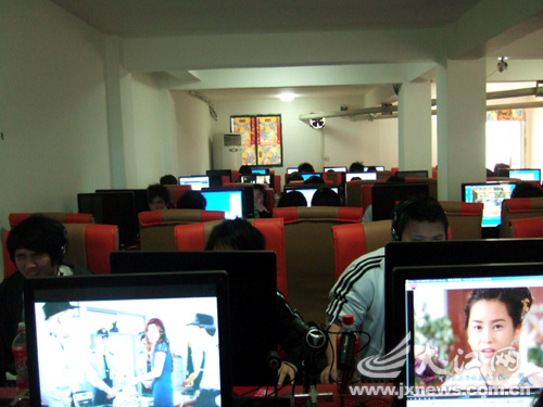 記者跟著小胡走到一處不起眼的地下室門口,他指著里面說,這里就是學(xué)校的網(wǎng)吧。記者走進網(wǎng)吧內(nèi)看到,里面3個房間連在一起,粗略一數(shù),大約有120余臺電腦,只有10余臺電腦空閑。許多學(xué)生一邊抽著煙,一邊聊天、看電影或玩著網(wǎng)絡(luò)游戲,時不時蹦出幾句粗口。