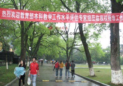 各種迎評(píng)的紅幅掛在教學(xué)樓或者人行道上,每幢教學(xué)樓門(mén)口都豎著倒計(jì)時(shí)牌,標(biāo)記著這是評(píng)估前的最后一天。學(xué)生會(huì)成員站在教學(xué)樓門(mén)口檢查校徽。校園110們穿著嶄新的保安制服,騎著摩托車在四處巡邏,據(jù)說(shuō)為了迎評(píng),添置了不少人手。隨便找個(gè)什么人聊天,開(kāi)口閉口談的都是“評(píng)估”。連和校內(nèi)的小店老板攀談,他也在說(shuō)評(píng)估:“對(duì)面那家店,是為了迎評(píng)新開(kāi)的……”