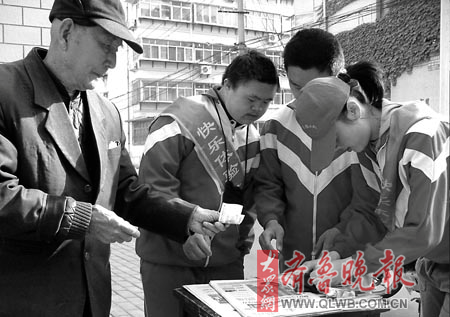濟南市育園學校是一所專門接收弱智兒童的特教學校。校長楊青青介紹,賣報活動始于職教班數學老師杜桂芝的一次賣報紙的實驗課。后來考慮到智障孩子要面臨謀生、就業的問題,學校就把“賣報紙”設為職教班的校本課。四年下來,學生們在賣報中運用數學知識,溝通、計算能力得到顯著提高,“一直堅持賣報的房琪同學患有腦癱,通過賣報受到啟發后,他現在每個周末都去廣場賣菠蘿,最好的時候一天能收入幾百元。”