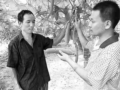 河南省鶴壁市石林鄉“大學生村官”苗大軍在指導農戶科學種植蔬菜。