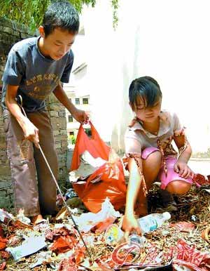 小麗花兄妹倆撿廢品賣錢幫貼家用。