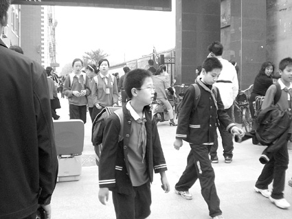 10月15日下午,身著統(tǒng)一校服的石家莊市某小學(xué)學(xué)生放學(xué)走出校園