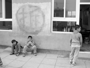 走進(jìn)紅星學(xué)校,正是下課時間,孩子們在教室外玩耍嬉戲,玩沙包、跳皮筋。墻上用白漆寫的一個“拆”字顯得很刺眼,但孩子們似乎已經(jīng)熟視無睹了。
