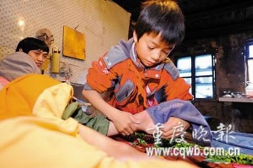 彭小林是城口縣河魚小學6年級學生,他1歲時,家里的頂梁柱爸爸在山西煤窯挖煤時受傷,從此腰部以下全無知覺。5歲時,媽媽和爸爸離婚,他便開始撐起這個家。