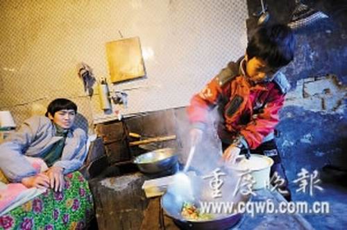讀好書,每天中午和晚上回家為爸爸做飯、照顧爸爸,是彭小林最重要的兩件事。可自4年級起,學校就要求上晚自習,彭小林不得不開始住讀。他也想到在學校附近租房子安頓爸爸,可租房子要錢。因此,這個愿望便只能在夢中實現。