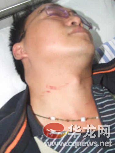 19日15時左右,被鄒建洪打傷住進醫院的忠縣新立鎮中學黃傳軍老師向記者介紹稱,18日14:10分左右,正在家中午休的他,突然接到其所任的高二(四)班學生潘歡的電話稱,他在教學樓被兩名不知姓名的男青年打了。
