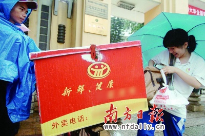 記者以想訂外賣的學生身份,向西校區保安員咨詢。該保安員明確告訴記者,他們自上周起接到上面“外賣不得入內”的口頭通知,理由是外賣大多由一次性白色塑料飯盒裝盛,這類飯盒污染大、不環保。“如果學生叫了這樣的外賣,就只能在校外吃完或者直接到外面餐館就餐。”該保安說。當記者問到如果外賣由鋁盒、砂鍋等其他材質器具裝盛是否可以入校,該保安考慮了一下表示“可以”,“以前叫外賣的學生還比較多,現在明顯少了。”