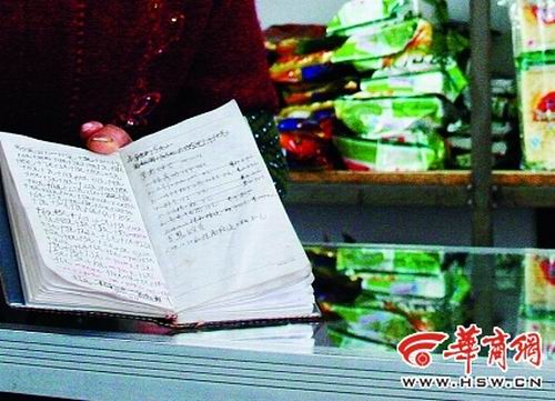 店主仵成翠向記者出示了給學(xué)生記賬的小本子,上面密密麻麻記錄了多名小學(xué)生賒賬的數(shù)額,但沒有具體名目!拔乙矝]有辦法,學(xué)生們都認(rèn)識(shí)我,一下課到店里搶著買東西,主要是小吃和學(xué)習(xí)用品,賬都是他們自己記下的,有的學(xué)生還從我這里借現(xiàn)金!