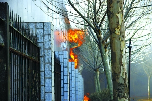 家住城市月光小區(qū)的張先生說,著火地點和他經(jīng)常遛彎的南湖公園僅一排柵欄之隔。起火后,整個小區(qū)里都濃煙密布。他看見先有6輛消防車在附近轉(zhuǎn)了一圈才找到入口,隨后不久,又有幾輛消防車趕來支援,著火地點應(yīng)該是中央美院的二層宿舍樓。據(jù)中央美院一位不愿透露姓名的外教介紹,上午大約10時30分,他正在教室內(nèi)上課,有學(xué)生突然跑過來嚷道:“著火啦!”他這才知道,學(xué)校女生宿舍起火。