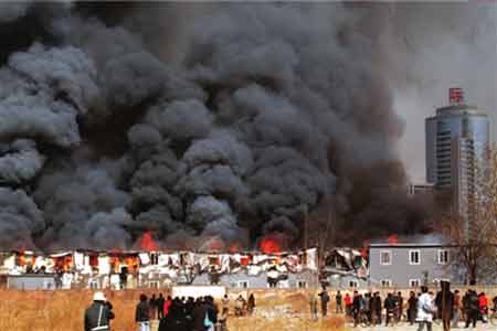 昨天上午10點09分,中央美院南門外的學生宿舍起火。該宿舍為二層彩鋼板臨建房,過火后,共有100余間學生宿舍被燒塌。除一人呼吸道被灼傷外,大火未造成更大傷亡。