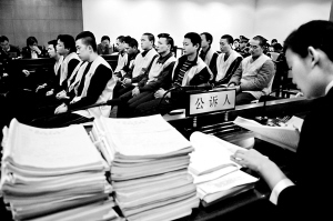 昨天8時50分,押送著黃偉、操雙全等13名犯罪分子的3輛警車陸續抵達海淀法院。 整個庭審持續了近2個小時,擺在公訴人面前的,是兩大摞犯罪嫌疑人的證據材料。記者數了數,本案的起訴書就有25頁之多。在大量證據面前,所有犯罪嫌疑人均選擇認罪。