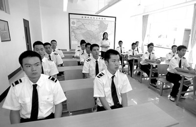 今年7月從高校畢業(yè)后,這38個(gè)年輕人懷揣制藥工程、土木工程、電子信息工程、經(jīng)濟(jì)管理等各種專業(yè)的學(xué)歷證書,和航空公司簽訂合同,成為公司一名員工,目前6個(gè)月的專業(yè)課程培訓(xùn)屬于試用期。每個(gè)月他們可以從公司領(lǐng)到兩三千元的薪水。不過他們不能隨便曠課,因?yàn)闀缯n就等于曠工。