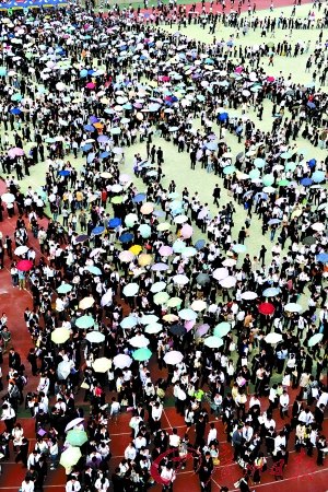 一位女畢業生身穿職業套裝,可能因排隊太過勞累,她干脆脫掉高跟鞋,光腳坐在操場上。最讓學生頭疼的不是這些。“我排了三個小時,還沒投出一份簡歷。”小黃發牢騷說,她從上午9時開始就在一家公司的展位前排隊。她說這句話時,下意識看看手表,已是中午12時。