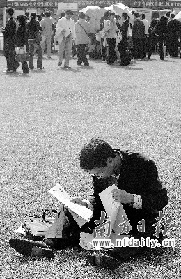 中山大學西方經濟學專業的陳同學對記者說:“兩年畢業本來就容易被認為沒有學到什么東西,又碰上金融危機,現在工作只能盡量找了!钡腿ツ晗啾,昨日的研究生專場熱度稍有減少。一些研究生表示,在這場招聘會前,已有一些人通過多種途徑找到了工作。據了解,研究生一般開出的心理價位是5000元左右。