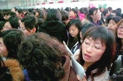 昨天(4日)上午9點,女大學生專場招聘會在北京市畢業(yè)生就業(yè)市場舉辦。此次招聘會共有50家企事業(yè)單位參加,600個崗位提供給前來應聘的女大學生。市人事局畢業(yè)生就業(yè)服務中心統(tǒng)計,截至下午2點招聘結束時,約5000人參加招聘,平均8人爭取1個崗位。