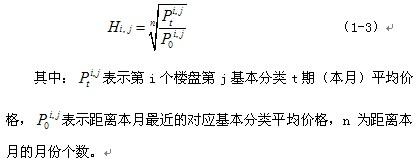 對于該類樓盤,依據(jù)該樓盤本月之前三個月內(nèi)離本月最近的各分類成交數(shù)據(jù)計算各分類平均價格,再利用下列計算公式計算基本分類環(huán)比價格指數(shù):