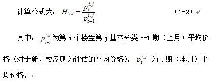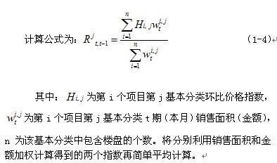 連續(xù)性銷售樓盤和新開樓盤基本分類環(huán)比指數(shù)計算公式為:
