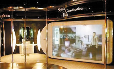 未來客廳———墻壁可以根據用途隨時變化,可以化作明亮的窗戶,化作隔壁的房間,甚至化作購物或觀看體育比賽的空間。桌面上還擺放著各種各樣的裝飾品,參觀者一旦觸摸到這些小東西,一連串的卡通影像就會從手下自動地跳躍而出,人們情不自禁地產生談話交流的沖動,感受生活的溫馨自在。
