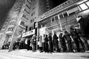 老張為女兒買了套二手房,本來可以由中介業(yè)務(wù)員來代為排隊納稅。但他放心不下、怕出差錯,決定親自出馬熬夜排隊。前日19時許,他開始在銀行旁的朝陽區(qū)第二地稅所門外守候。至昨日清晨4時許,已有50余人排在其后,并肩“戰(zhàn)斗”。
