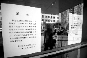 貼在玻璃門上的通知說:“根據京建住(2008)225號文件規定,自2008年4月8日之前簽訂購房合同的已購經濟適用住房上市出售,須取得契稅完稅憑證或房屋所有權證滿5年后,可以按照市場價格出售,產權人應按出售價格的10%補交土地收益等稅款!