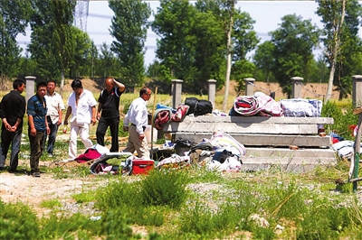 記者趕到時,已是中午12點半,鏟車已經鏟倒大半的院落,工人們圍坐一團,眼神呆滯,旁邊散落著剛剛搶出來的被子、床單、鍋碗瓢盆,現場一片狼藉。正西方向,鏟車還在不停地撓動著爪子,把剛剛刷上新漆的房子一片片推倒。