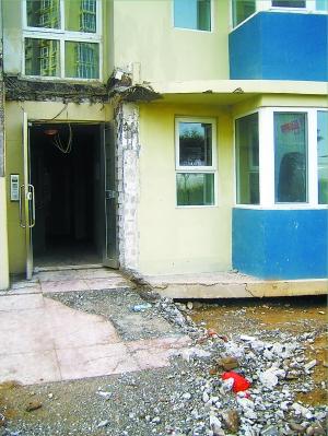 據媒體報道,繼上海的“樓脆脆”后,京版“樓脆脆”也已現身——清河萊鎮(zhèn)香格里小區(qū)的11號樓門廳下陷,墻上破了兩個大洞,引起小區(qū)業(yè)主的擔憂和恐慌。今天上午記者在萊鎮(zhèn)小區(qū)的現場看到,塌陷的門廳已經被拆卸。
