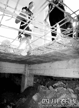 譚小平說,按規劃底樓的房屋原就是框架結構的店鋪。打掉的隔墻是去年才加上去的,地板上打洞不是為了修建地窖,而是準備降低以前修建的防潮隔墊,讓住房和商鋪能在一個水平面上。因此,這樣改造絕對符合安全。