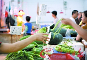 為了證實(shí)徐玲說法的真實(shí)性,記者在新街市內(nèi)的一個(gè)檔口買了兩斤菜心,單價(jià)為2元/斤,在兩三公里外的沙鳳綜合市場(chǎng),記者又買了2斤半菜心,單價(jià)只為1.5元/斤。