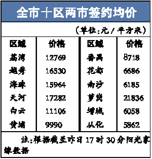 廣州十區兩市一手住宅簽約均價首度“破萬”