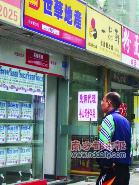 剛看到世華地產(chǎn)彩田村分行門口“免傭代理半山御景華庭”的告示時(shí),記者還以為是二手樓,因?yàn)橹挥匈I二手房才需要付給中介公司傭金。采訪之后才知道,原來“免傭”的說法是相對中介公司而言的。“一般來說,在中介公司放盤的都是二手房,交易達(dá)成后中介向賣方雙方各自收取房款1.5%的傭金,而現(xiàn)在我們這里放盤的半山御景華庭是一手新樓,我們作為中介代理方帶客戶過去購買,對買家是不收取任何中介費(fèi)用的,而是開發(fā)商給予我們傭金提成。”該店鋪經(jīng)紀(jì)人陸先生解釋道。