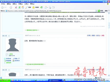 10月9日上午,在威海一家便民網(wǎng)站“社區(qū)供求”欄中,新注冊用戶“朱小冬”發(fā)出了一個標(biāo)題極度夸張的帖子,宣稱“1塊錢起拍,賣自己樓房,81平方米,絕對真實”。