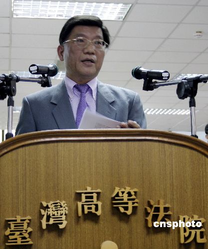 十二月二十八日上午十時,“臺灣高等法院”對前臺北市長馬英九特別費案進行二審宣判,駁回檢方上訴,維持一審無罪判決。圖為“臺灣高等法院”發言人溫耀源在宣判后召開新聞發布會。中新社發 陳國華 攝