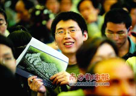 排在購房順序第一位的劉先生昨日簽下了新里程項目的第一單購房合同。他告訴記者,自己從事計算機方面的工作,雖然不是廣州人,但來廣州工作已六七年,有廣州戶籍。