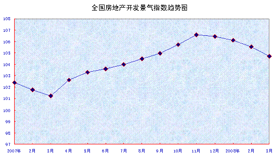 中新網4月18日電 據國家統計局網站消息,3月份,“國房景氣指數”為104.72,比2月份回落0.83點,同比上升3.50點。
