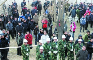 8時許,強拆人員在別墅周圍拉上警戒線,80名城管人員、數十名民警和其他部門工作人員分散在警戒線周圍維持秩序。
