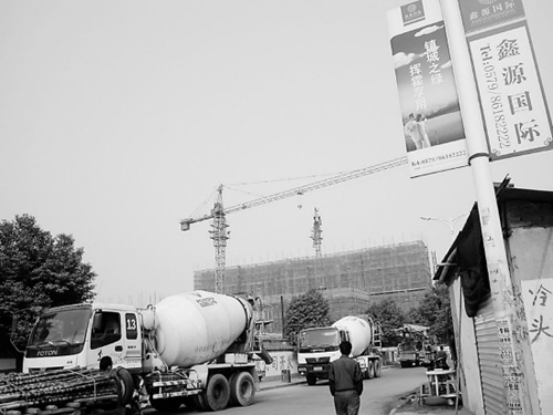 11月14日,記者站在這幢還沒蓋到一半的大樓前。這個坐落在義烏與東陽交界處的樓盤,叫“鑫源國際”。