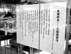 商戶們自編的諷刺詩詞被貼在商場玻璃上。(圖片來源:京華時報 張魁/攝)