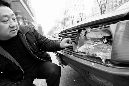 昨天中午,在“翠園·錦榮世家”小區的地下車庫前,業主馬志宏捂著自己的左眼,激動地說,前晚8時許,他像往常一樣將車開到小區的地下車庫,卻被看車人告知他沒有停車卡不能進入。馬志宏詢問原因得知,小區物業當天下午開會制定了一條規定——沒有購買停車位,沒有小區停車卡,不能將車停入車庫。隨后,雙方發生口角,并產生肢體沖突!芭赃呎玖宋辶鶄保安,一看我跟看車的吵架,就一起上來打我,把我的左眼打傷了!瘪R志宏松開手,記者看到,他的左眼明顯腫脹,呈青紫色,眼中還布滿血塊。馬志宏向記者出示了鄭州市第一人民醫院的診斷證明:“左眼瞼明顯腫脹、淤血,瞼結膜明顯充血,球結膜大片出血、水腫,角膜水腫……左眼視力明顯下降,為0.25。”“他們有可多人,把我的車也砸了。”指著停車庫前的一輛奧迪車,業主曹明奇對記者說,和馬志宏一樣,前晚10時許,他來停車時也被告知沒有停車卡不能停車。曹明奇說,他看暫時無法協商,就想先把車里的孩子送回家,沒想到剛走出不遠,就有七八個不明身份的人把他的車砸了。記者看到,車前兩個大燈和一個尾燈全被砸碎(如上圖),車身上也有許多擦痕。