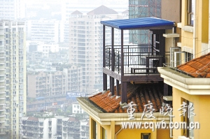 小區物管公司技術部人員也在現場幫忙,他們說,由于“吊腳樓”地處32樓高空,又懸在一尖角屋頂上,拆除起來難度較大,“預計還要一天才能拆完!