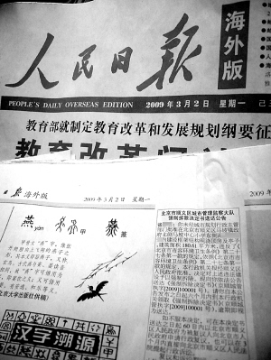 《人民日?qǐng)?bào)》海外版廣告部的工作人員告訴記者,海外版面向全世界80多個(gè)國家發(fā)行,城管部門刊登《強(qiáng)制拆除決定書送達(dá)公告》是第一次。(記者 王彬)