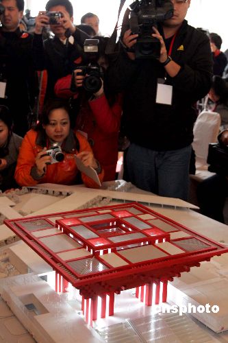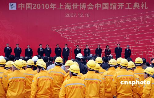 十二月十八日,凝聚全球華人智慧的中國二0一0年上海世博會中國館在上海黃浦江畔舉行開工典禮。據介紹,作為上海世博會的永久性場館之一,總用地面積為六點五二公頃,總預算十五億元人民幣。整個中國館區(qū)由國家館、地區(qū)館、港澳臺館等三個部分組成。中新社發(fā) 潘索菲 攝