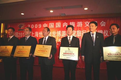 4月16日,國家旅游局和上海世博局在大連正式公布首批24家上海世博會境內世博游指定旅行社名單,并向其授牌。