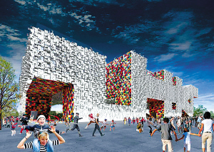 韓國文字不同于其他文字,一般人即便不識卻很容易辨認(rèn)。韓國國家館設(shè)計師正是巧妙地利用不同膚色人群的共同認(rèn)知,用韓文來“建造”展館:遠(yuǎn)觀展館,由幾個碩大的韓文字母連接而成;近看外墻,則為無數(shù)凹凸有致的韓文字母。可以說,韓國國家館是用韓文符號組成的抽象建筑物,是一個“空間化符號”,韓國文字的幾何學(xué)特性從建筑學(xué)角度被巧妙地重新詮釋,成為韓國國家館的獨(dú)特構(gòu)成要素,并因此成為世博園區(qū)的一個奇特景觀。