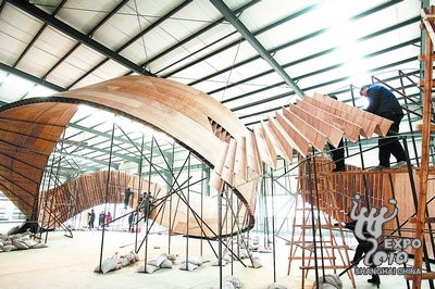 據悉,目前湖南館的地臺的鋼架、環體的胎架和其中一個環體以及投影機的桁架已經基本完成,也將于近期啟運到上海。相關的后續搭建工作計劃于4月15日前完成并投入試運營。整個展館的組裝過程將歷時近100天。