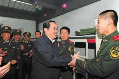 部隊駐地,戰士們精神抖擻,士氣高昂。俞正聲說,今天是大年初一,同志們辛苦了。按照黨中央、國務院和中央軍委的要求,大家遠離家鄉,在上海參加世博安保任務,我代表上海市委、市政府和全市人民表示歡迎和衷心感謝。我們要按照胡錦濤主席在上海視察時的講話精神,確保世博會安保工作萬無一失,相信廣大武警和駐滬部隊戰士一定能堅決執行命令,圓滿完成各項任務。戰士們鏗鏘回答:“絕不辜負黨中央、國務院、中央軍委和胡主席的重托,絕不辜負全國人民的殷切期待,堅決完成上海世博安保任務。”